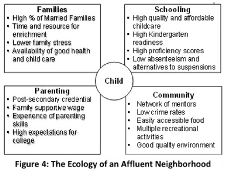 In Chapter V, I developed the image of the Fractured City that allows us to “see” the consequences of our racially and economically segregated metropolitan regions of North America. The most critical societal consequence of the Fractured City is the deep injustice of what many have called the “opportunity gap,” i.e., the limiting of opportunities of families and children in high-poverty neighborhoods. The “opportunity gap” is better described as “the silent violence of poverty” because poverty does deep biological, cognitive, and emotion “violence” to children, and it is “silent” because the majority of the metropolitan region is indifferent to this violence.